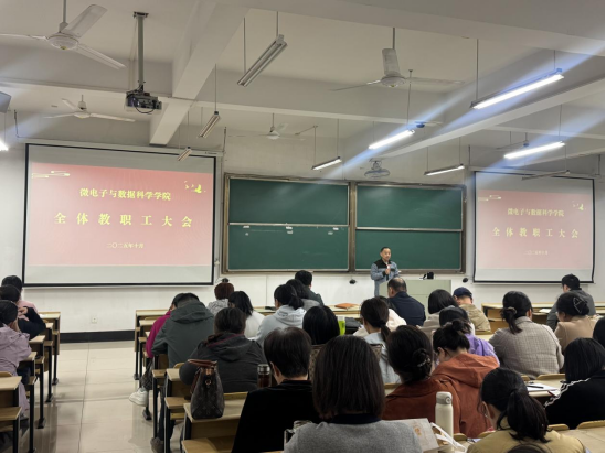 10月20日下午,太阳成集团tyc122ccvip在数理楼403召开全院大会,会议由学院党委书记汪春胜主持,全体教职工参会。