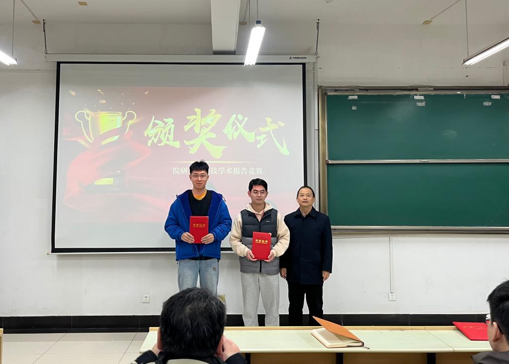 会议开始,学院举行研究生科技学术报告竞赛颁奖仪式,对在竞赛中脱颖而出的获奖者予以表彰。院党委书记汪春胜,党委副书记、纪委书记、副院长张敏及副院长李勇为获奖学生颁奖。在思政教育环节,辅导员聚焦二十届四中全会精神,结合研究生群体特点进行针对性解读,引导同学们将个人学术追求与国家战略需求紧密结合,在实践中践行青年学子的责任与担当;安全教育板块围绕消防安全、电信诈骗防范、网络信息安全三大重点开展,辅导员结合近期案例普及防范知识,并带领全体研究生学习《研究生手册》中安全管理条款,强化研究生安全意识;就业推进环节,围绕行业发展趋势与就业市场现状,辅导员鼓励毕业生明确方向、主动求职,学院还将提供个性化就业指导与帮扶服务,为毕业生顺利就业保驾护航。最后,会议还组织2025级新生专题学习《研究生手册》,引导新生规划好研究生生涯。